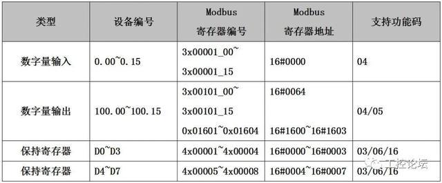 2、欧姆龙CP1H-E设备编号和Modbus寄存器编号、地址对应表如下所示: