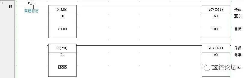 4、判断保持寄存器D0、D1、D2、D3的值,如果大于6000,则各自进行清零操作: