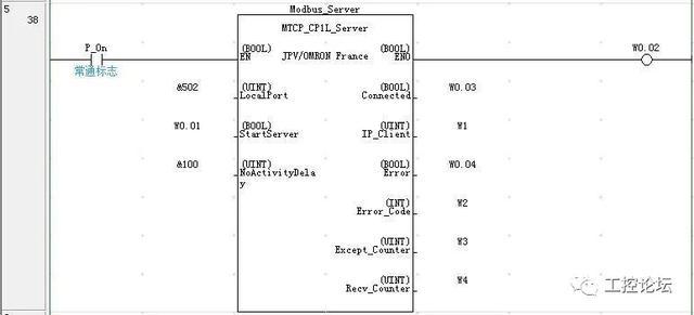 Modbus TCP Server功能块编制的程序如下所示: